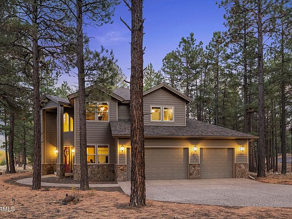 Welcome to a stunning custom home located in Linwood Heights. Situated on over an acre, this property provides both privacy and tranquility. Wake up each morning to breathtaking San Francisco Peak views from the primary suite, complete with a cozy fireplace, wet bar, and private sitting area—a true retreat within the home. The primary bath has a soaking tub and separate shower for ultimate relaxation. With an open, airy layout, and multiple deck access points, this home offers a blend of sophistication and comfort. The kitchen has granite countertops, stainless-steel appliances, and beautiful custom cabinetry. 3 car garage! As a Linwood Heights homeowner, you'll have exclusive access to the 180-acre Jesse Gregg Park and its amenities. Just minutes to AZ Snowbowl, and Downtown!