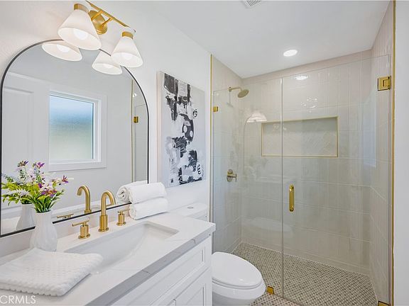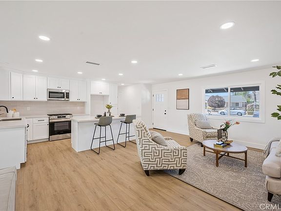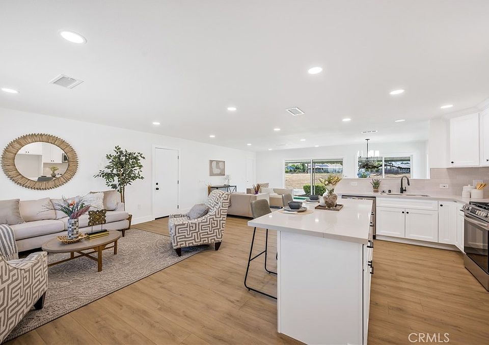 Welcome to 28630 Carmel Rd, a fully renovated 3-bedroom, 2-bath home located in the desirable Sun City Civic Association 55+ community. Designed with comfort and connection in mind, this home features a spacious open-concept floor plan where the living room, dining area, and modern kitchen flow seamlessly together. The kitchen shines with bright white shaker cabinetry, quartz countertops, porcelain tile backsplash, and a large island perfect for casual dining or entertaining. Luxury vinyl plank flooring and recessed lighting throughout the main living areas create a bright, inviting atmosphere. Both bathrooms have been stylishly updated, one with a custom walk-in shower accented by gold finishes, the other with a serene tub surround in soothing green tile. The primary suite offers a peaceful retreat with views of the low-maintenance yard. Peace of mind comes with a brand-new roof, ensuring years of worry-free living. As part of the Sun City Civic community, residents enjoy access to pools, a spa, fitness center, clubhouse, game rooms, and a full calendar of social activities and events. The neighborhood is also conveniently located near shopping, dining, golf courses, and freeway access. This move-in ready home is the perfect blend of modern upgrades and an active, community-centered lifestyle.