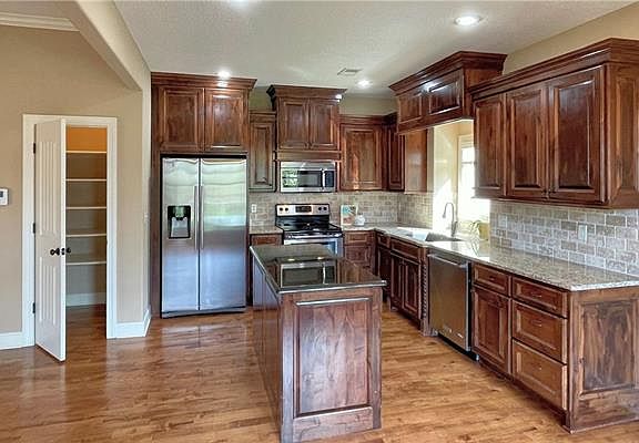 - Ceiling Fan(s), Custom Cabinets, Kitchen Island, Stained Cabinets, Walk-In Closet(s)