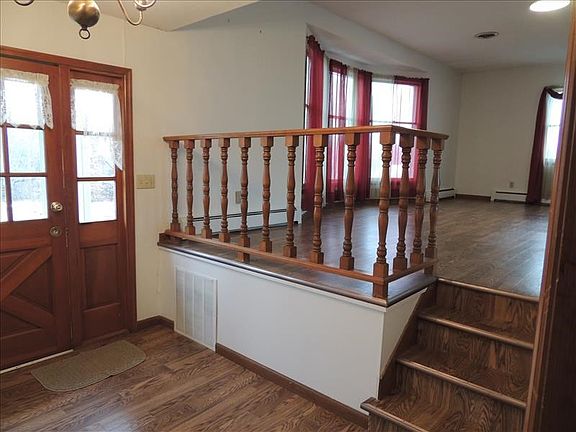 A quite and peaceful location is what you will find when you tour this home. This property is just outside the city limits and easy to town and sits on 1.23 acres m/l. This home is a large multi-level colonial style home with big columns in the front and back. There are lots of space in this home for entertaining and for the family to enjoy. There are 2 living spaces and a rec room in the lower level. The upper level has 3 bedrooms and 2 bathrooms. The master suit has 2 closets and spacious bath. Also there is a deck off the master suite. On the back of the home there are three different levels and spaces for entertaining. There is a deck off the kitchen, out of the family room and a new concrete patio and when exiting the basement there is a nice concrete patio.