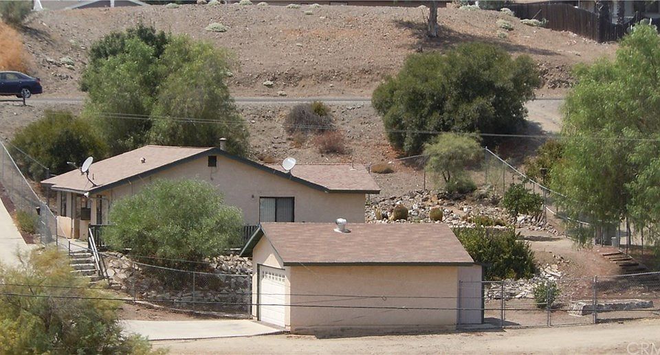 Live away from it all...on almost 3/4 of an acre! The home has 3 bedrooms, 2 baths, and the main living area offers a free-standing fireplace as well as slider access to the back patio. It is also open to the kitchen, which has a bay window & direct access to the in-kitchen dining area. The master bedroom is very large, with a wall of closets, Berber carpet, and built-ins. There is an inside laundry room - (with 220 for electric dryer, or gas option), and a 2 car detached garage (also with 220) with built-in workbench for your projects. The house is down the slope, which puts you away from the road, but the majority of the parcel is flat and an additional parcel (APN# 350-171-007) is included in the lot square footage. Bring your animals, and your toys....there's plenty of room. Don't wait! (Added note: the roof is just about 5 years new!)