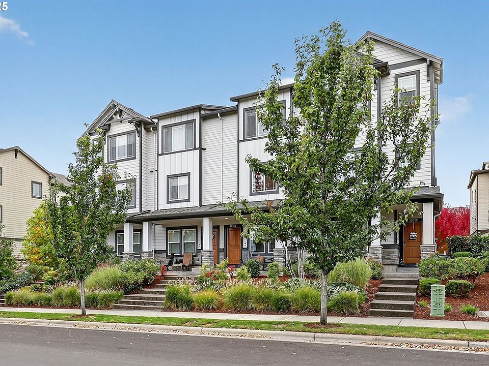 Discover this exceptional townhome in Wilsonville’s sought-after Villebois community, perfectly situated across from Montague Park with serene city light and Mount Hood views. This impeccably clean condo features high-end finishes, including custom cabinetry, granite countertops, stainless steel appliances, and a bright kitchen with expansive counter space. The thoughtful layout offers two spacious bedrooms, both with attached bathrooms, the primary with vaulted ceilings, a generous closet, and an outstanding eastward view. On the main floor, you will find a versatile office or flex space with a convenient half bathroom. Enjoy Villebois’ vibrant lifestyle with amenities like pickleball, basketball, tennis, and volleyball courts, putting green, dog park, playgrounds, and miles of biking and walking paths. Practicality shines with an attached one-car garage, a driveway for extra parking, and convenient street parking out front. An efficient gas furnace with air conditioning keeps things comfortable year-round. Don’t miss this rare opportunity to own a standout townhome with premium views and finishes in Villebois.