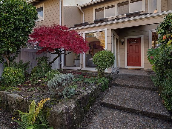 This lovely 2 bedroom townhome in Ash Meadows features a peaceful, gated courtyard, perfect for gardening or relaxation and makes this home truly special! Indoors the open kitchen provides room to dine, plus ample workspace and storage. Enjoy the sitting room with floor-to-ceiling windows overlooking the colorfully landscaped courtyard with water feature...a favorite for neighborhood birds! Relax by the fireplace in the generously-sized living room, opening to a bonus vaulted area...would make an excellent office, exercise, or hobby space! Upstairs, you'll find a large primary bedroom with plenty of closet space and a second bedroom with a scenic view of the greenspace below. The shared upper bath includes double sinks, an extra deep jetted tub, and a step-in tile shower. Other highlights include a half bath on the main level and a convenient upper-level laundry area. The oversized garage offers abundant cabinet storage and even a cedar-lined closet, perfect for seasonal clothing! With a second gated entrance on the street side of the property, you'll have easy access to paved walking paths, parks, and the nearby HOA seasonal pool. Come enjoy this spacious home in the heart of Wilsonville, just minutes to restaurants, shopping, and easy access to I-5. A rare find!
