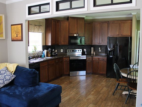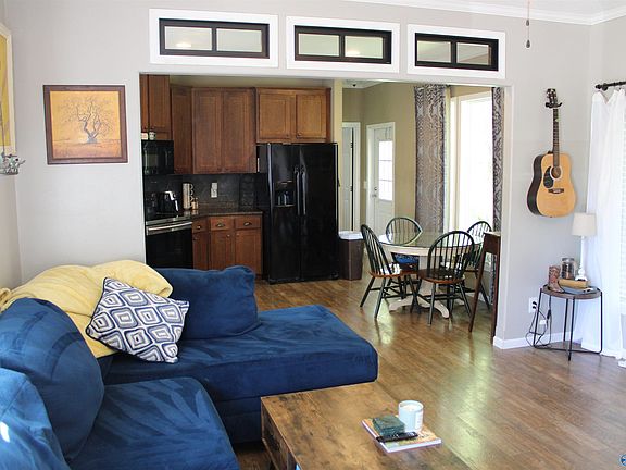 Great starter home nestled in a peaceful setting. This very well kept home offers 1,000 sq. ft. of living area with an open floor plan. This includes three bedrooms, and two baths. Eat in kitchen offers picture window views to outdoor life, Custom cabinets, pantry, new back splash, and recessed lighting. Luxury wood vinyl, carpet, and Crown Molding throughout. Ceiling fans, bull nosed corners, and recessed lighting make this a modern style home. Master bedroom offers a private bath with double vanities with a spacious walk in closet, separate shower and large tub, plus an abundance of storage.