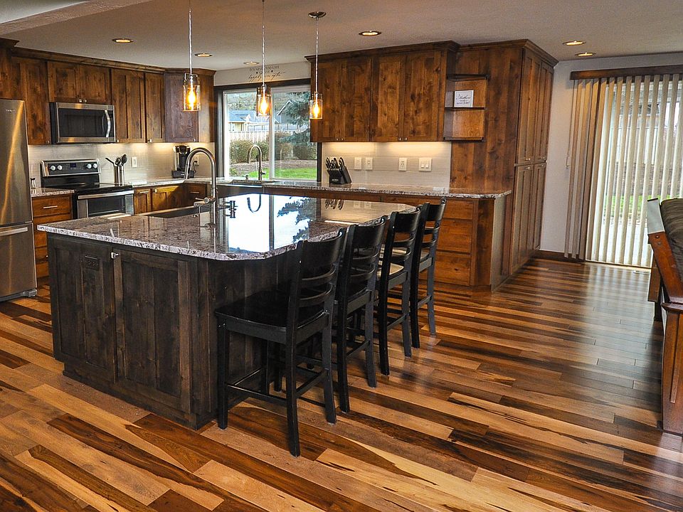- Master Downstairs, Shower/Tub Combo, Double Vanity, Linen Closet, Walk-In Closet(s), Ceiling Fan(s), Kitchen Island, Vaulted Ceiling(s), Granite Counters