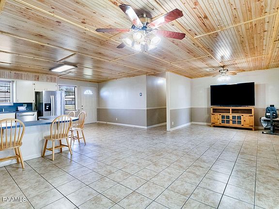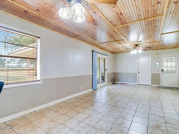 Nestled in the serene countryside of Lawtell, yet conveniently close to the vibrant communities of Opelousas and Eunice, this delightful ranch-style home is a rare find blending rural tranquility with modern comfort. With its inviting ambiance and carefully maintained features, this property is the ideal haven for diverse buyers, be it young individuals, couples, or families looking for a serene lifestyle coupled with practical amenities and potential for rental income. Sprawled over a large, generous corner lot with frontage on three sides, this 1971-built home offers 1,400 square feet of thoughtfully designed living space, including three bedrooms and a full bath. Entering the home, you are greeted by an open-concept layout that seamlessly integrates the kitchen, dining, and living areas. The interior's rustic yet polished charm is enhanced by the light-toned wooden ceiling panels and sophisticated wainscoting, imparting warmth and style. The kitchen is a perfect blend of form and function, featuring creamy white cabinetry and a dark, sleek U-shaped countertop that offers ample workspace for culinary creativity. Stainless steel appliances add a touch of modern sophistication, complementing the room's overall rustic aesthetic. The property's outdoor offerings are equally enticing. A spacious and well-maintained lawn dotted with mature trees creates an atmosphere of serenity and provides ample space for recreational activities or future enhancements. A covered patio opens up to this lush green expanse, offering a splendid spot for morning coffee or evening gatherings. An additional highlight of this property is the beautiful outdoor kitchen area, which can effortlessly be transformed into a guest house or rental unit, complete with a full bath. This space presents versatile opportunities - whether to accommodate extended family or generate potential income, greatly enhancing the property's value.
