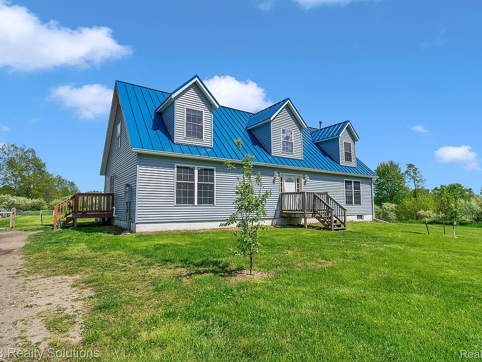 Beautiful home with 3 bedrooms, 2 1/2 bathrooms on over 21 acres! Main floor laundry and primary suite. Large bedrooms on second floor. All appliances included. Newer vinyl siding and metal roof. Large 40x70 pole barn with cement floor. Property boasts 3 small ponds for fishing, lots of wildlife, mature pines throughout, and a shooting range. Very secluded. Boarders farmland to the North. Minutes to M53 making your commute quick and easy. This home is ready for you to make it your own.