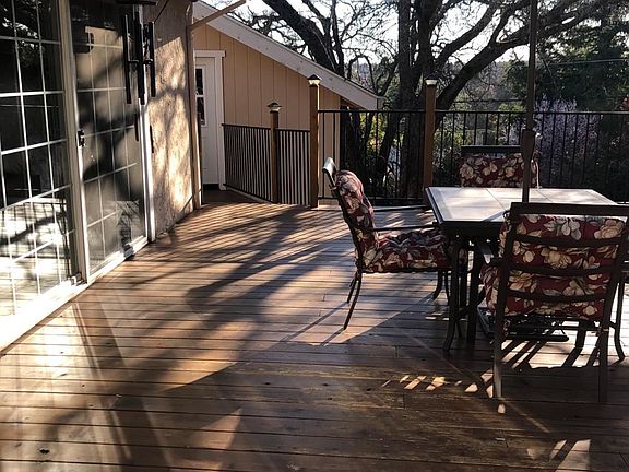 Charming family home in peaceful Cameron Park. House boasts 3 bedrooms with 2 bathrooms. Enjoy cooking in your well lit kitchen with new lighting and eating your meals on your outside deck overlooking the majestic oaks. Large glass doors from the master bed and family room open to your tranquil deck. Cuddle up on those cold nights and enjoy the gas fireplace insert or entertain in your newly remodeled living room. Ceiling fans throughout and whole house fan that works from your phone!!! Newer flooring in the house. The attached 2 car garage has plenty of space for vehicles and storage but you also have an additional detached 3 car garage!!! Tall enough for a car lift, deep enough for your toys! Loft above the garage is used as an office and theatre room with its own bathroom! Could possibly be used as a guest bedroom. Plenty of trees for shading and the front has drought resistant low maintenance landscaping. Welcome Home..