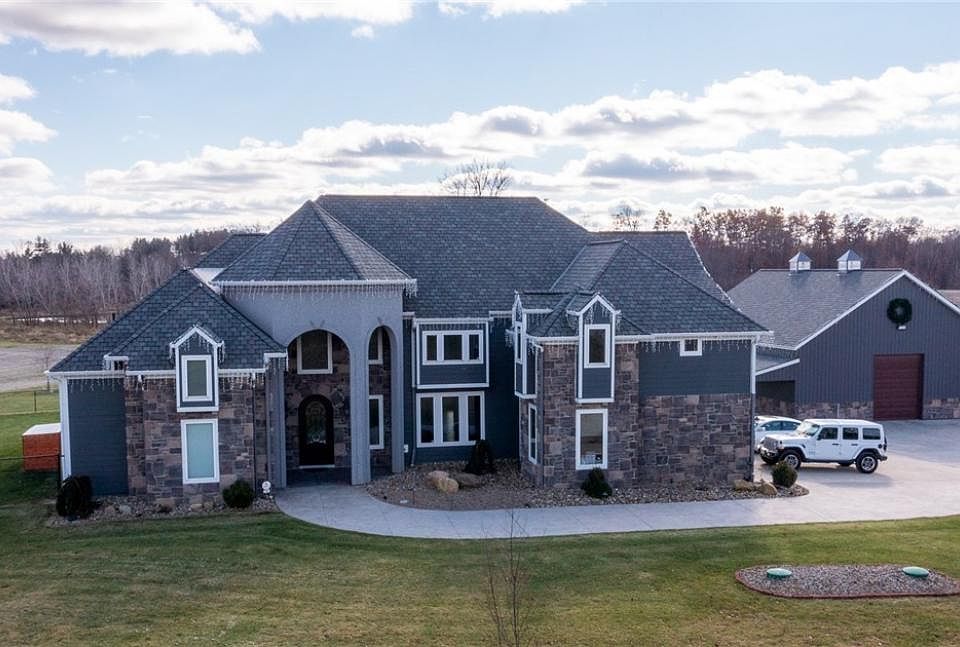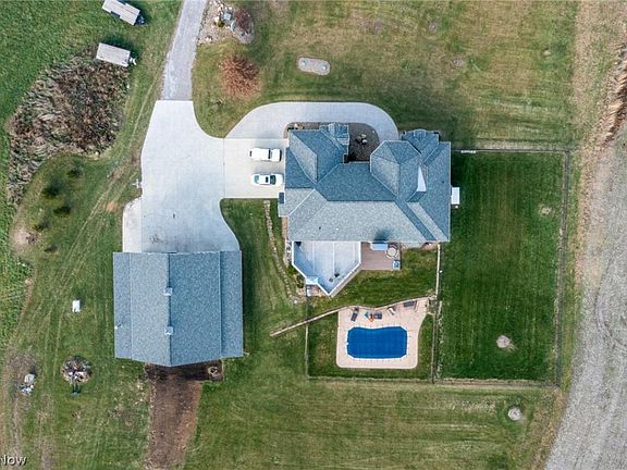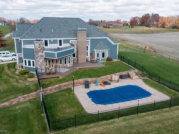 Outstanding opportunity in Lake Local Schools near downtown Hartville, schools and more!!! Private setting on acreage galore!! Heated floor throughout first floor and 3 car garage, dual HVAC systems - separated by 1st and 2nd floors, Renai on demand water heater, barn outbuilding with full electric, hunting room in barn - with 1/2 bath and sleeping quarters for Hunters getaway!! Gourmet eat-in kitchen with breakfast bar, fireplace, heated floor with GE Monogram appliances. Amenities galore for outdoor fun, swimming in the in-ground salt water pool