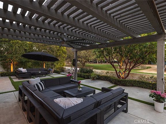 Elevating highly coveted Modern Farmhouse style to an impressive new level, this rare single-story luxury home in the gated equestrian enclave of The Oaks Farms in San Juan Capistrano is immaculately maintained and exquisitely upgraded. Curb appeal is undeniable thanks to a custom arbor that accentuates a courtyard entry with covered entry porch, manicured landscaping and custom hardscaping. A formal entry provides an expansive introduction to the three-bedroom, three- and one-half-bath residence, which is generously proportioned at approximately 3,418 square feet and reveals an office, professionally designed interior. Enjoy Modern Farmhouse-inspired sliding barn doors at select passageways, upgraded wood-style plank tile flooring, vaulted ceilings, wood accent walls, upgraded lighting fixtures and plantation shutters. The heart of the home comprises a great room and kitchen that opens via bi-fold glass doors to front-row views of graceful centurion oaks and the community’s scenic riding arena and stables. Perfect for large gatherings, mealtime and movie nights, the great room is anchored by a fireplace with floor-to-ceiling stacked-stone surround, built-in cabinetry and open shelving. An oversized island with seating shines in the high-end kitchen, which is appointed with stained wood Shaker cabinetry, slab granite and quartzite countertops, a butler pantry with wine refrigerator, two sinks, a spacious walk-in pantry, and top-of-the-line stainless steel appliances including a built-in refrigerator and six-burner cooktop with griddle. Bi-fold glass doors erase the line between indoor and outdoor living spaces in a primary suite that reveals a sitting area, walk-in closet, freestanding tub and separate vanities.Nearly 10,151 square feet, the all-flat homesite offers ample room for a large backyard with covered patio, custom fountains and carefree turf. Limited to just 32 newer luxury homes, The Oaks Farms is surrounded by majestic coastal oaks, grassy fields, and a picturesque, thoughtfully preserved equestrian center. Award-winning schools, San Juan Capistrano’s charming village and historic mission, and miles of beaches are all just minutes from home.