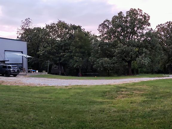 3 bay metal building with one bay being a 2 bedroom loft style home. One bed and full bath upstairs and 1 bed/ full bath downstairs. Big bedrooms! Awesome Five-Star dual fuel range included. 6 burners, griddle, two ovens and a commercial hood with warming lights. Huge 50x40 shop/garage. Room on land to build! Pond on property. Pretty creek that runs along drive. Potentially 3 more acres for sale directly behind (east) building.