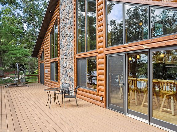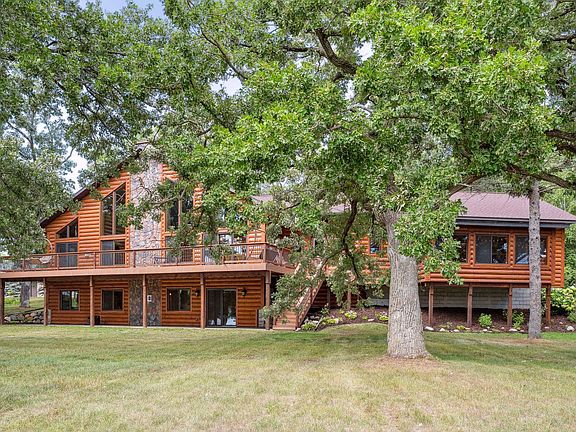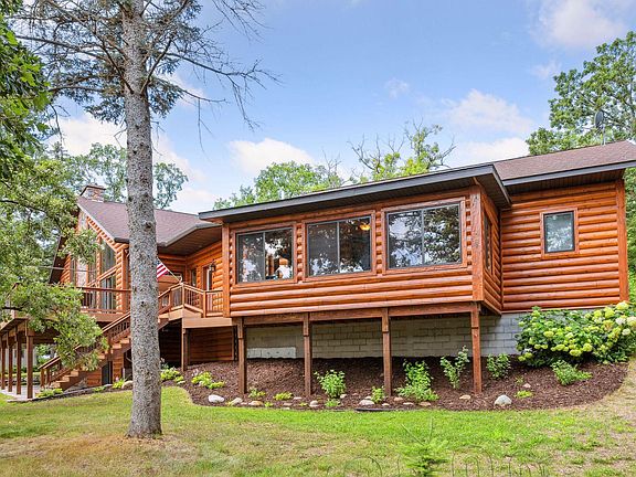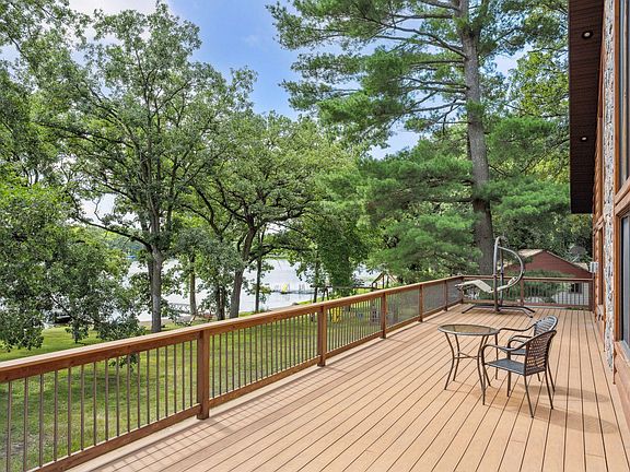 Luxury Lake Home, craftsman built in 2014 & impeccably maintained. Upgrades, natural materials & detail-work is tastefully displayed throughout the property. 255' waterfront, established sand beach, peaceful 2.25 mature acres with sprawling, flat yard to the lake. Dramatic two-story stone fireplace, soaring vault with open loft, floor to ceiling Marvin windows drench the home in natural light & showcase easterly sunrise views across the lake. The 12'x54' maintenance-free deck is where everyone will insist on gathering for dinners, parties & family reunions. Enjoy the quiet & cozy ambiance of the enclosed detached porch. Gorgeous kitchen with seating for eight & large butler pantry. Main level owner's suite with WIC, soaking tub, fireplace, vault ceiling, & patio door to deck. Main floor laundry/mudroom. Lower-level features media/flex room, wet bar with seating for six, gas fireplace, walkout to 12'x54' patio & generous storage space. Shed for boat & equipment storage. Private driveway