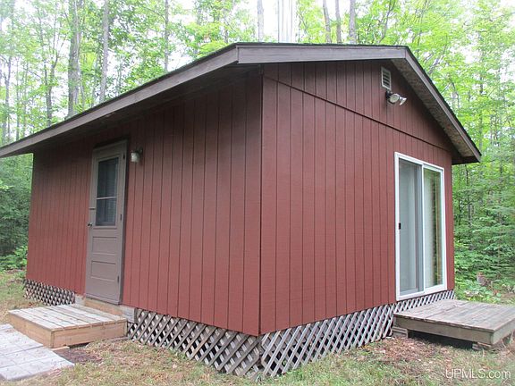 SNOWMOBILERS...." A CAMP IN THE U.P. WOODS" ......THIS single room, open- concept cabin is perfect for your sporting experiences......snowmobiling is ideal, as near Trail #12...or a hunting get-away...and just 15 min from services to include gas and groceries there is no running water.....nearby lakes great for summertime swimming and boating......there is an outhouse.......perhaps build a sauna for your bathing needs.........this is the finest woods and nature EXPERIENCE you can enjoy........the cabin is appointed with a refrigerator, cooking range, a sink with a drain only, bunk bed frames and an electric heating unit adding ambience and warmth......the driveway is constructed with mine rock, making it very stable... a wood space heater can easily be added..... ...