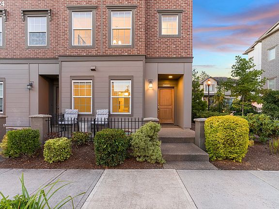 Phenomenal end unit townhome centrally located within Villebois. The interior is stunning and bright, receiving direct light as an end unit with territorial views from the dining area. A foodie's kitchen featuring quartz counters, stainless steel appliances and oversized island. This home boasts high ceilings, new LVT flooring, gas fireplace and recessed ceiling in the primary bedroom. The spacious and bright nook on the upper level makes for a perfect work from home or workout space. The oversized single car garage with rear parking pad driveway offers plenty of space for multiple cars, workbench or hobby projects. Centrally located in Villebois between Montague Park and Edelweiss Park, enjoy gorgeous putting greens, pickle ball and kids nature playground. Just steps to the central Piazza for coffee and convenience store.