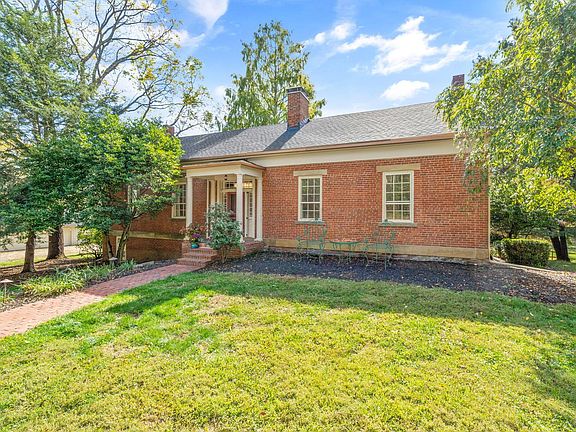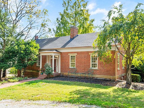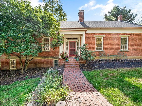 Rare opportunity to live in this timeless country retreat on 8.7 acres. Built in 1827, this historic brick Virginia style farmhouse blends classic craftsmanship with carefully designed modern upgrades. Fully renovated kitchen with warm wood cabinetry, stainless steel appliances, custom dog nooks and a water station. Additional updates include two renovated first-floor baths, custom lighting throughout, a new roof, a fenced yard, and a convenient dog wash station. Walkout lower level provides great family room/media/work spaces- incredibly charming with whitewashed brick floor. The grounds are equally impressive, with stone patios, wooded walking paths, creek, and outdoor entertaining spaces. A 3-car garage and pole barn add versatility. This one-of-a-kind property combines privacy, natural beauty, and historic charm — all in a truly special setting. See A2A remarks.