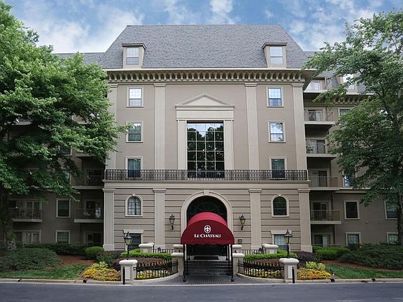 Quiet & serene, the prestigious Le Chateau gated community boasts 4 acres including dog walk, pool, community room for entertaining, fitness center & concierge. Unit offers new stainless steel appliances, eat-in area, oversized family room with fireplace, spacious master suite w/ 2 closets, master bath w/double vanities, new HVAC, & balcony! Larger than most 1- Bedroom condos you'll find in all of Buckhead & just minutes from shops, restaurants, Marta, & I-85!