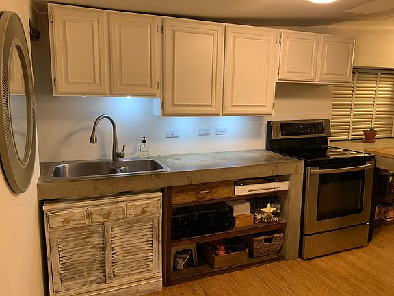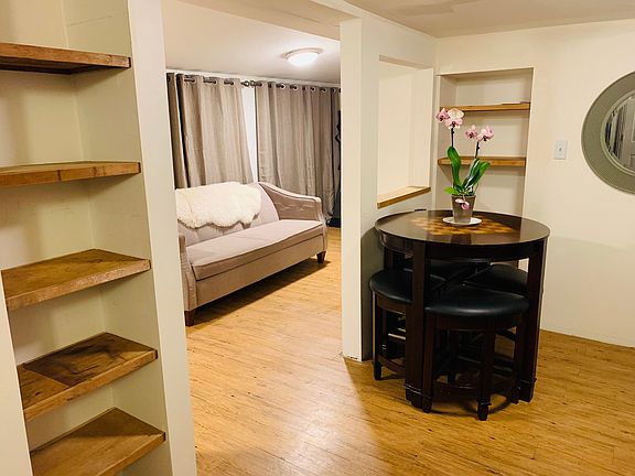 This place looks like one of the popular "Tiny Homes". It has custom features in every space- starting with faux concrete countertops, cedar shelving and cedar accents, corrugated metal rain gutters and metal skirting around the lower exterior siding. Every square inch has been wisely utilized- which makes for a lot of perks packed into this footprint. There's even a small deck to enjoy the outdoors. If you want a roommate- there's a separate entrance to the master bedroom and a utility kitchen with a cooktop, butcher block counters, fridge, microwave, laund sink and washer/dryer (Owner can easily remove these features as well). Upgrades include- 2020 NEW shower and pex plumbing. 2019 NEW roof shingles, sheetrock refinishing, countertops in both kitchen spaces, vapor barrier, insulation and metal skirting. 2016 NEW electrical panel and appliances. Space rent $460mo, includes w/s. This charming unit with open cedar shelving and updated touches throughout is well worth checking out!