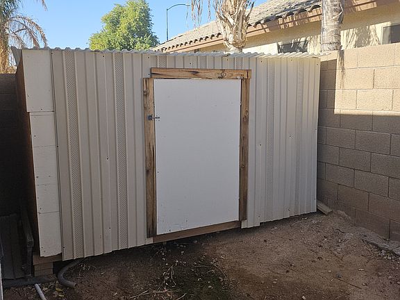 - Exterior features: Heating system: Forced Air, Storage shed, Walk In Closet