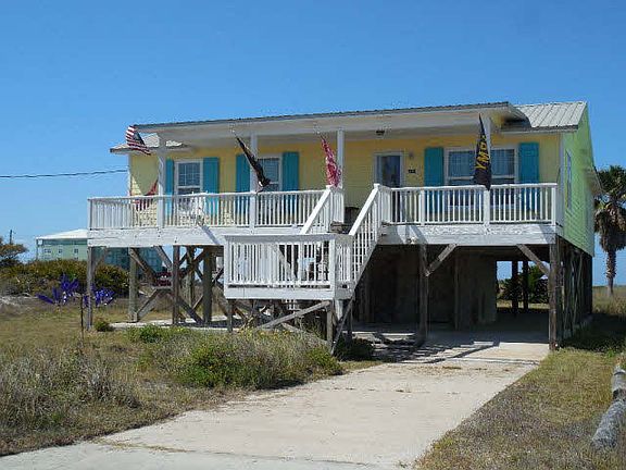 NEW PRICE Take a walk down memory lane, to a time you could snooze in your hammock and be lulled to sleep by the rhythmic sound of waves on the beach. A time for playing in the yard riding bikes, and houses had front porches with rocking chairs. Well, this is Fort Morgan and this charming beach cottage offers Gulf and Bay views, 4 bedrooms and 2.5 baths. There is a hammock on the front porch, and a swing under the house. There is a sleeper sofa, 2 regular sofas and 2 recliners, for relaxing, when not on the sugar white sands of the beach. House sits on a dead end street with low traffic. Nearby are Tacky Jack's and Sassy Bass for dining, A marina for private boating and fishing and off shore fishing charters. The expansive beach is perfect for walking, or sitting and watching the sun slowly dip below the horizon. Golf and all water activities abound. Floors are Bamboo, Luxury vinyl tile and Karastan. 8x10 storage below. Measurements are approx and should be verified.