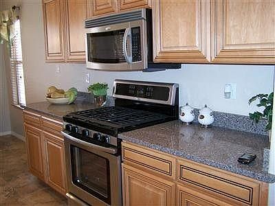 Gorgeous former model home in the family friendly Hidden Valley subdivision of Rio Rancho. This house will be available on June 1st for rent and includes several upgrades that you would expect in a former model home. This beautiful 4 bedroom, 2.5 bathroom with 2692 sq feet, will have brand new carpet installed at the end of May. Additional features includes: Stainless steel kitchen appliances including refrigerator, microwave, gas range and dishwasher Granite counter tops with upgraded kitchen cabinets Travertine tile flooring in kitchen and bathrooms Huge bedrooms (Master bedroom has walk-in closet 12x15) Master bathroom has a garden tub plus separate shower Downstairs & upstairs living rooms Bonus area for kids also upstairs A/C Unit (no swamp cooler) Backyard kiva fireplace Mature landscaping with fresh sod, along with drip system and sprinklers Two car attached garage Great Rio Rancho Schools (Enchanted Hills Elementary, Rio Rancho Middle, Cleveland HS) Brand new washer & dryer can be added to house for an additional $50 per month in rent