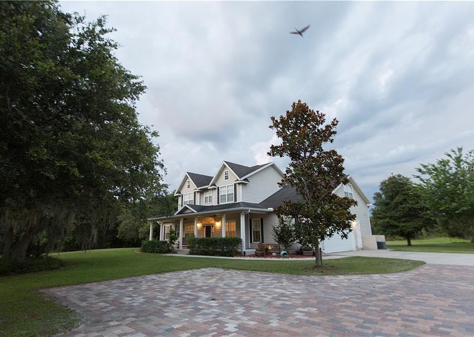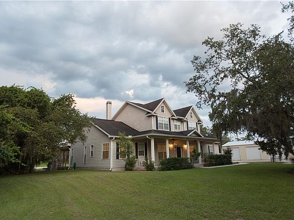CUSTOM, PRIVATE, GORGEOUS 5 bedroom home on 5+/- acres.....crown molding, 10' ceilings, built-in shelves, & a brick fireplace name a few of the extras. Cherry-wood floors, a formal dining, security system & cameras, & lots of recessed lights top it off....want to wake up to deer grazing, turkeys strutting, & nature all around? The location & the vegetation make both of these possible. A locked gate & a pavered driveway welcome you in.....adorable landscaping adds to the panorama & let's not forget the awesome back lanai! From the 16'x34' wood deck, the 25'x34' pavered patio, the outside summer kitchen, & the built-in fire-pit, THIS AREA IS WHERE THE ENTERTAINING IS AT! Like volleyball?....or want a SUPER beach area for that future pool?...maybe the best sandbox around?...you've got it! Invite friends & family over & make lots of memories! And NO, we did NOT forget the FANTASTIC metal shop! 5 bays....let me repeat, 5 BAYS! Park the boat, the camper, your antique car, or simply use for the workshop of your dreams! A sealed room inside could be used for storage, an office, or walk-in cooler. Bonuses: under cabinet lighting, 3 upstairs hall closets, bonus room for storage, irrigation system, tankless water heater, 2 sets of French doors, upgraded trim-work, plantation shutters, inside laundry w/ cabinets & space for an addtl fridge/freezer, & complete perimeter fencing. Bring the horses & the pups.....park your many vehicles, enjoy an evening of volleyball, & see what this secluded property has to offer.