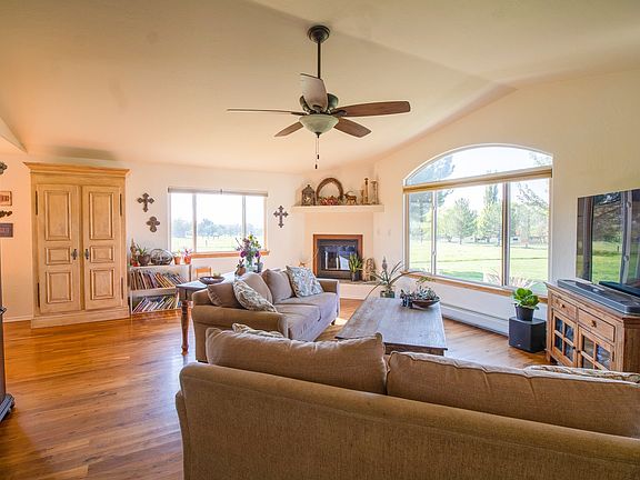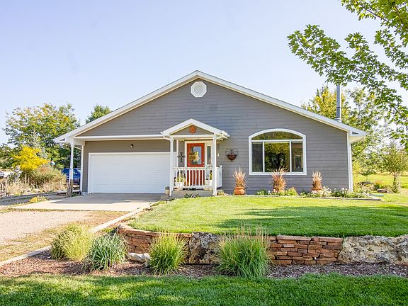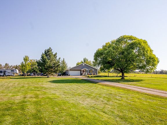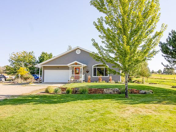 Don't miss your opportunity to own this extremely well maintained home on over 5 1/2 acres with mature landscaping. Includes an established garden and plum, cherry and apple trees. All is kept green with the 5 shares of water in the water users association. Great set-up with a 4'x8' storage tank w/pump (& float to turn off if water gets low) for garden drip lines and yard sprinklers. There's an attached oversized 1 car garage and 25x40 heated shop on slab with plumbing & 4" waste line stubbed in the corner. Additional shed w/lean to. Raise your own chickens with the fenced chicken coop. Everything was well thought-out including the barbecue hook-up stubbed to the house. This spectacular property even comes with a built-in horse shoe pit. The home boasts walnut flooring in living/dining/kitchen/hall, carpet in beds, porcelain tile in baths.