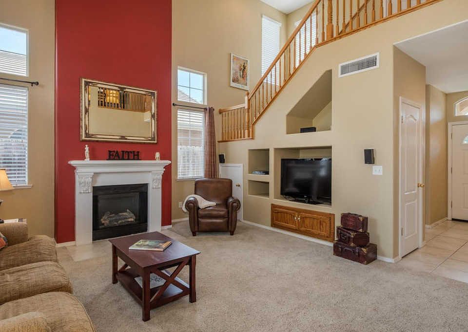 Well-maintained 3 bedroom, 2.5 bath home in Mansionette Palisades gated community. This home was freshly painted inside in 2018. The downstairs has a half bath, living room, dining space, kitchen and laundry room. The kitchen features an island, pantry, built in microwave, dishwasher, oven, and cooktop. The living room has a great view to the well manicured backyard, built in surround sound wiring, and has a gas fireplace to add to the ambiance. The upstairs features a large landing/loft space, currently used as an office, as well as 3 bedrooms and 2 bathrooms. The front and backyard have very low maintenance, low water usage, and have Syn Lawn that was installed in 2014. The home also has an alarm system, ceiling fans throughout, and extra concrete on the wide side yard on the south side of the home.