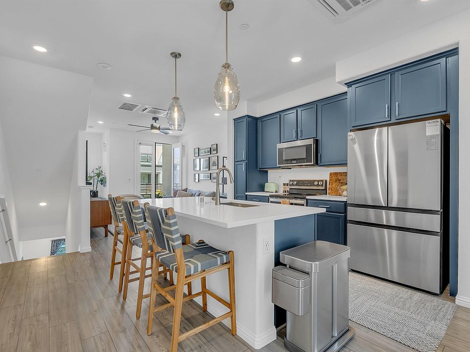 Step into modern comfort in this light and bright 2-bedroom, 1.5-bath condo within the vibrant Bay37 waterfront community. Built in 2023, this 1,138 square foot home features an open-concept living area ideal for entertaining. The kitchen boasts an island, stainless steel appliances, and custom built-in cabinetry in the breakfast nook. Experience modern living with amenities like central AC with three separate zoned smart thermostats and WiFi-enabled smart appliances. Enjoy the convenience and security of smart locks with cameras and recessed lighting, all powered by your fully paid for solar for energy bills cheaper then your dinner out. In-unit laundry is conveniently located next to both bedrooms. A private balcony provides a tranquil outdoor escape, while a generously sized two-car garage with direct access offers exceptional urban convenience a rare find in this community. Perfectly located near the Target/Safeway shopping center and the lively "Spirits Alley," home to popular spots like The Almanac and Saltbreaker, this condo also offers easy commuting with a water taxi to Jack London Square and ferry access to San Francisco. Enjoy waterfront serenity while staying connected to city life.