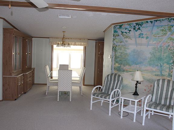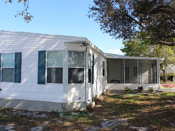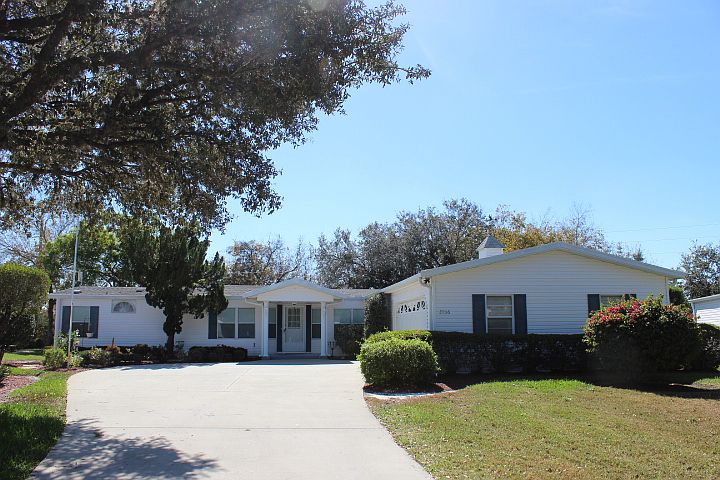 If you are looking for a large home backing onto orange groves, look no further than this triple wide manufactured home on rented land in sought-after Marina Cove at Highlands Ridge, a 55+ community on Bonnet Lake. It is being offered furnished with the exception of personal items (list available) and has a side entry 800 sq.ft. garage. The spacious kitchen has a wall oven, cook top set into a granite slab (being installed March) on top of a large island, lots of cabinets and an adjacent breakfast area. The master bathroom has both a garden tub and walk-in shower, dual vanities and a saloon style swinging door separates it from the bedroom. The utility room has the washer/dryer on one wall and a built-in desk area and cabinets on the other. The guest bedroom has its own adjoining 9x10 sitting room and there is also a 12x12 screen room at the rear, overlooking the orange groves. Golf cart included, as is. New roof installed in 2018, washer, dryer and refrigerator all purchased 2018. New 5 ton a/c unit installed 2020. The monthly $504 lot rent includes grass cutting and the use of the amenities, excluding the golf courses for which fees apply. There is also an additional $15 per year hoa fee. Large dogs allowed, boat ramp and dock space available, community gated at night. This is a wonderful home and perfect for year round residence - lots of community activities, 2 pools, hot tub, pickleball, shuffleboard, tennis and more.