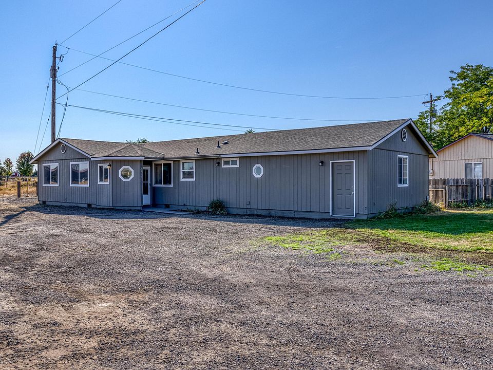 Check out this upgraded 5 bedroom 3 bath home in SW Redmond. The home is all one level inside and offers rooms for everyone. Foster care, daycare, group home, roommates. There is a separate entrance from the main front door. Just a minute to the 97 on ramp to Bend and to the airport. What this home offers is all new faux wood flooring, int/ext paint, cabinets, counter tops, mini split system(s), barn door style bathroom cabinets, lighting, fixtures, vanity's. Primary bedroom has walk in shower and walk in closet and is located at the back of the house. Separate dining area off the living room. Nice big windows allows for lots of natural light. If you are wanting ample space with privacy this could be the home for you. This fenced .24 acre lot offers the possibility to build a shop/garage or to park all your vehicles. This home is eligible for a short term rental.