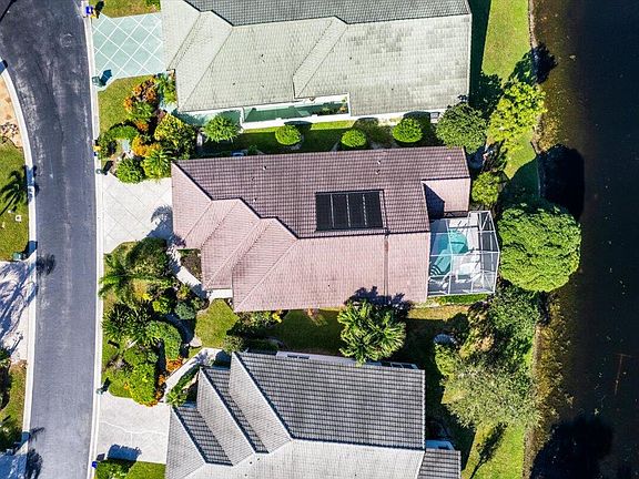 This home is located in one of the most desirable areas of River bridge and has a lot to offer. The interior is open and airy, with plenty of sunlight. The living room opens to a high arched screen enclosed patio with a solar heated pool with waterfall jacuzzi that overlooks a scenic water view. The backyard has a lush tropical landscaping, large mango tree, banana plant, and many varieties of orchids. This creates a very secluded and private feeling. This home features a new washer and dryer, a new kitchen sink and garbage disposal, and a recently serviced newer air conditioner. The bedrooms and den are outfitted with brand new hypoallergenic and easy-to-clean pearl glow neutral color carpeting with double layer padding, providing a soft and comfortable surface underfoot. House was constructed with Royal wall reinforced concrete with stucco which is a very durable material that can withstand a wide range of weather conditions, which is great to have here in Florida. Homes also features an attached 2-car garage which provides ample space for vehicles and storage, and the HOA fee covers lawn care, cable & internet, making this home a great place to call home, where memories are made and dreams come true.