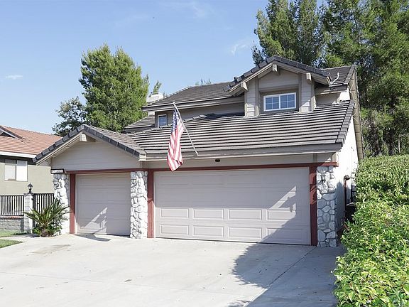 Looking for your serenity? This turnkey home located atop a hill has gorgeous mountain views and is situated on a quiet cut-de-sac! Enter through the beautiful gated courtyard and the peace begins. Offering 3 bedrooms and 2 1/2 baths, sitting room or office attached to master bedroom with a bi-fold door entry. Master Bedroom features 3 closets, 2 walk in closets and 1 wall closet. Bring your stuff here! Attached Master bath with a shower in tub and dual sinks. Downstairs features a beautiful stone fireplace in living room, updated kitchen with corian counters, breakfast bar, recessed lighting, light and bright family room and a HUGE under the stairs closet. Updated downstairs bath. 3 car oversized garage with built-in cabinets and a workbench. Backyard features a fully covered patio with two outdoor overhead fans, new sod to lie on and look up at the stars and a peaceful slope featuring plants and trees. Includes refrigerator, washer and dryer. Excludes front courtyard fountain and potted plants.NO HOA OR MELLO ROOS! The schools in the are are excellent AND in 2019 Castaic High School, a state of the art public school is expected to open! Minutes from Castaic Lake! Must see this home before it's GONE!! LOWEST PRICE OF THIS MODEL/SIZE IN OVER 1 YEAR!