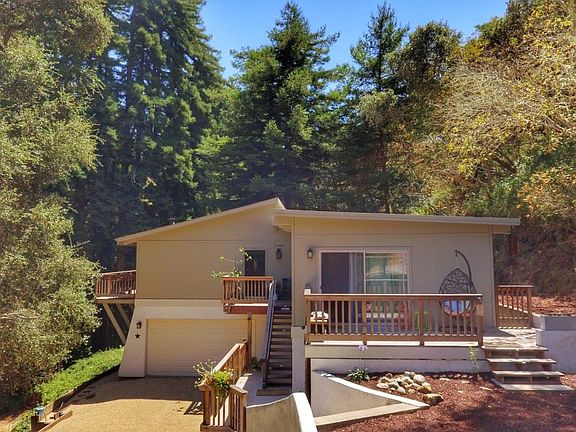 Updated modern redwood retreat just 1 mile from Mid Carmel Valley. Set amongst centuries old redwoods, oaks trees and ferns on a private 2 acre park like setting resembling Big Sur is just minutes from the amenities in the desirable Carmel School district. Recently renovated down to the studs in 2018, this open and airy 2 bedroom 2 bath home features include gorgeous wood and stone floors, smooth-coat plaster walls, exposed wood trusses, vaulted ceilings, a brand new kitchen, appliances, washer and dryers on both the main living area and garage, new bathrooms, electrical, plumbing, roof, windows, and doors. Oversize garage with room for possible office conversion. Wrap around decks to take in the views & ample outdoor space. Manicured trails lead down to a redwood grove next to a seasonal creek offer the perfect place to lounge in a hammock, listen to the gentle breeze through the trees, disconnect from devices, reconnect with nature. A must see for anyone looking for something unique
