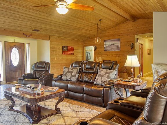One of a kind 3 bedroom 2 bath 3 car garage home on .50 acres with RV parking. This home is on natural gas and sewer. Walk into a large living room with tile floors, wood vaulted ceilings and a beautiful 2 sided see through fireplace. Kitchen offers concrete counter tops, farmers sink and the stove and microwave that are built into a custom brick wall. Two dinning areas are ideal for entertaining and a covered porch makes for the perfect hangout to look at the peaceful mountains and wildlife. Dinning area has built in cabinets that run the length of the room and is open to the kitchen. Master Bedroom is elegant with a huge walk in closet. Master bathroom has an enormous custom tile shower and large sink. Walk down your wide hallway to spacious bedrooms. This house will give you comfort and room to grow! Laundry room has a sink and endless cabinets with a door leading out to the garage. This home has a new leaf system. Don't forget to watch the virtual tour! This home has so much potential to become your dream home. Golf course is closed.Call today and make a showing appointment.