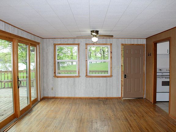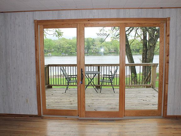 Go Jump In The Lake! Affordable Blue Lake Cabin on the Waters Edge. This Property Features 2 Bedroom, 1 Bath Rambler, Main Floor Living, Partial Basement for Storage and Utilities, Stunning Views from the Wrap Around Lakeside Deck, Beautiful Hardwood Flooring, Galley Kitchen with Cabinets and Appliances. Excellent Hard Bottom Sandy Shoreline with that Perfect Swimming Beach. Enjoy the Lake all Year Long. Property Includes Dock.