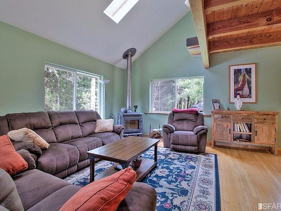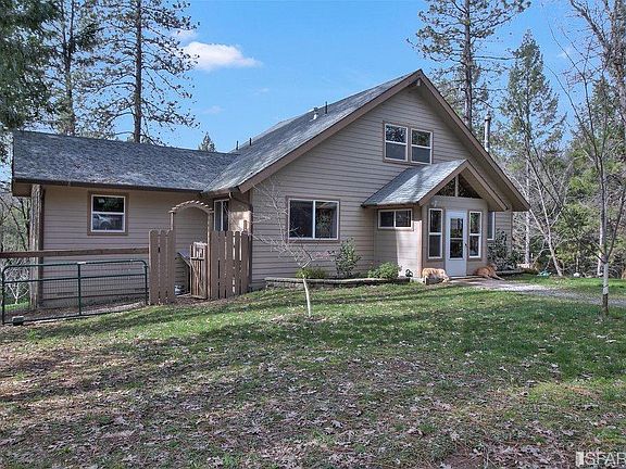 Nearly 10 sunny, rolling acres with end of the road privacy in North San Juan. Minutes to Ananda village. Four bed, two bath house meticulously maintained. Kitchen includes custom concrete countertops, copper backsplash and porcelain floors. The rest of the house has maple hardwood floors, vaulted ceilings, large windows and natural light from skylights. There is a 400sq foot deck, half of which is covered, and a 400 square foot patio with an outdoor kitchen and wood-fired pizza oven. 2 acres are fenced for deer in the back, and there is a 3 acre fenced pasture, currently used for sheep, with a 16X24 foot barn. 1/2 court basketball pad, woodstove and propane heat, whole-house evaporative cooler, seasonal creeks, mature fruit trees.