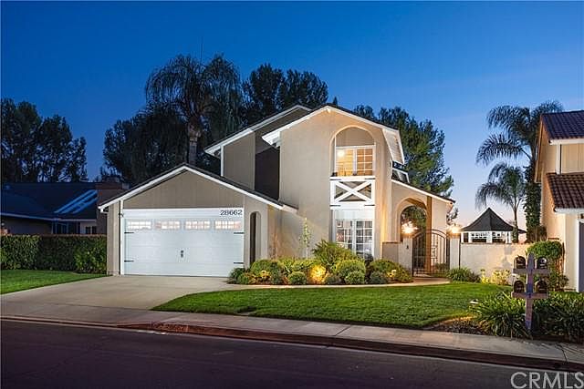 Stunning hilltop home on a single loaded street with enchanting sunset views just a short walk from Lake Mission Viejo. This four bedroom, three bath home is in the coveted Montiel neighborhood with highly rated schools. Elegant kitchen opens to the family room and boasts beautiful cabinetry, quartz countertops, stylish back splash, a farmhouse sink and stainless steel appliances. Quality upgrades include travertine flooring, Pella windows, shiplap, new stair rails, near new AC & Heater, new garage door, a whole house fan, smart thermostat, smart sprinkle controller, skylight, all LED lighting, two work stations in the upstairs hallway, custom closet organizers, new light fixtures throughout the home and swisstraxx flooring tiles in the garage. The atrium with its new wood deck and fountain contributes to the ambiance. Open floorplan with a downstairs bedroom and bath, dining room, formal living room and separate family room with vaulted ceilings and a handsome fireplace. You will be spending a lot of time in the backyard oasis unwinding in your jacuzzi spa with color changing LED lights, grilling on the built-in outdoor BBQ, watching football on your outdoor TV, lounging in the romantic gazebo and soaking in the sunsets. This home comes with access to Lake Mission Viejo offering boating, fishing, outdoor concerts, holiday events, picnics, sandy beaches and the opportunity to make lifetime memories. Minimal HOA fees and no mello roos save you money. Better hurry on this one. Welcome home.