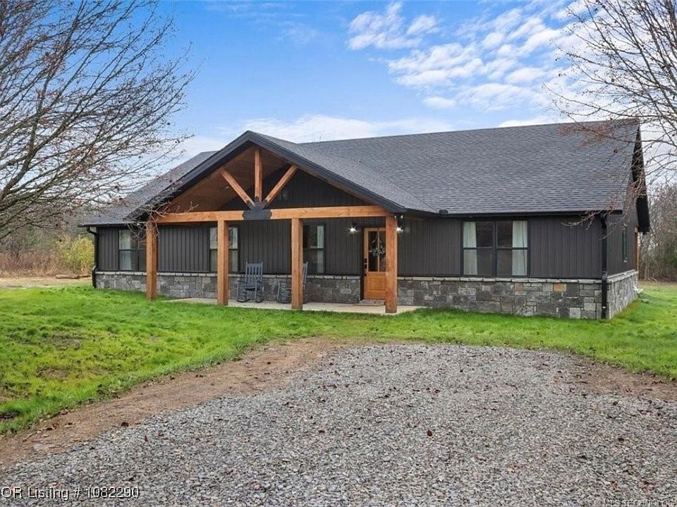 Stunning custom built home just outside Bokoshe city limits on Highway 31. This brand-new home offers modern comfort and country living on nearly 3 acres, just a short drive from town. Boasting 3 spacious bedrooms and 2 bathrooms, this home features an open concept floor plan that seamlessly blends functionality with style. The heart of the home is the kitchen, showcasing custom maple cabinetry with adjustable shelves and soft-close doors and drawers. High-end Frigidaire Gallery appliances, including an induction convection oven with an air fryer, make cooking a pleasure.