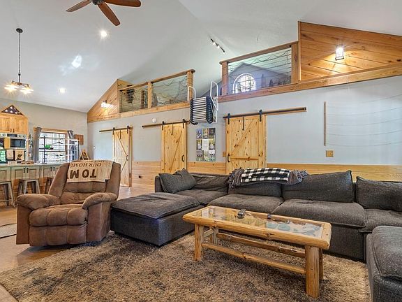 Come check out a home that was built as a forever home. Sellers cut no corners and went above and beyond on the construction of this home as it was to be forever! Well life happens.... and now its available to purchase!. Lucky you!!! From the soap stone fireplace to the man cave this house will amaze you. Man cave doubles as that and family room with projector , tv entertainment, etc. The open concept with brown maple custom cabinetry and large island is stunning! The open loft area can be used as bedroom, office, or what ever you choose!! Attached lean-to is great for storage and or keep wood dry, etc. Now let's take a look at this nearly 7 acres wooded lakefront parcel..., a solar lighted bridge to bunk house, green house, and, fire pit and level lake shore!! There is a space with ground work completed to build a 36x72 garage, It continues... She shed, planting area, stamped patio concrete, built in seating, firewood storage, etc. Words cant say enough about the efficiency , construction and ownership pride thru out. Make it yours today!