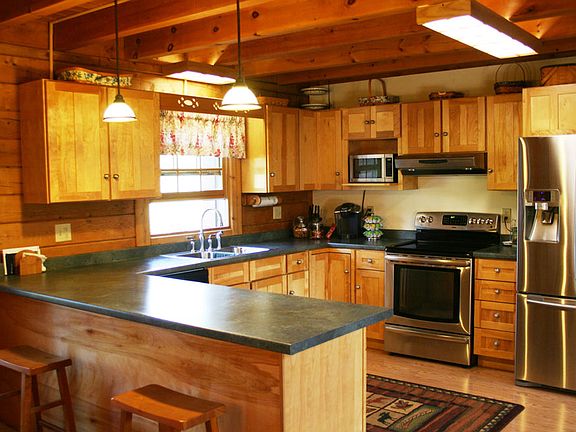 - Fireplace features: wood stove