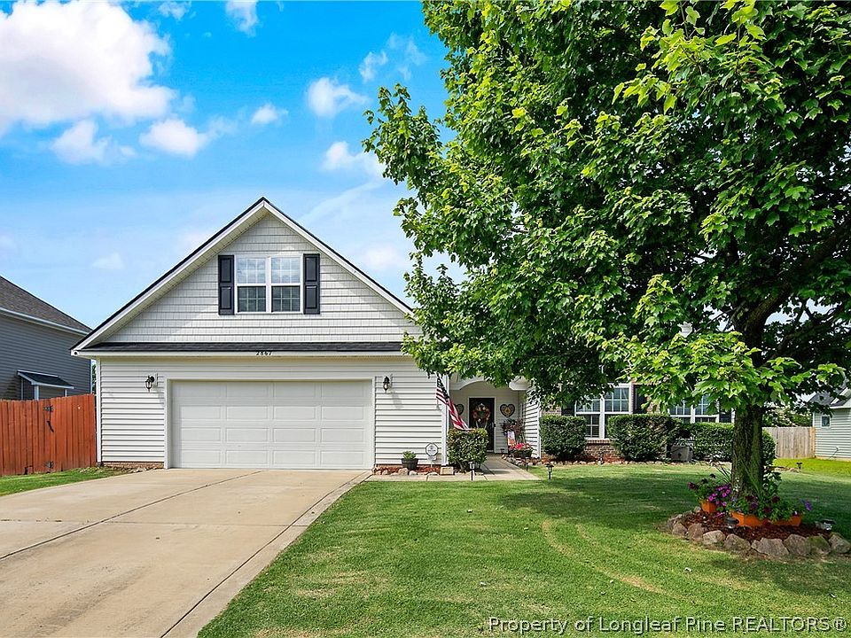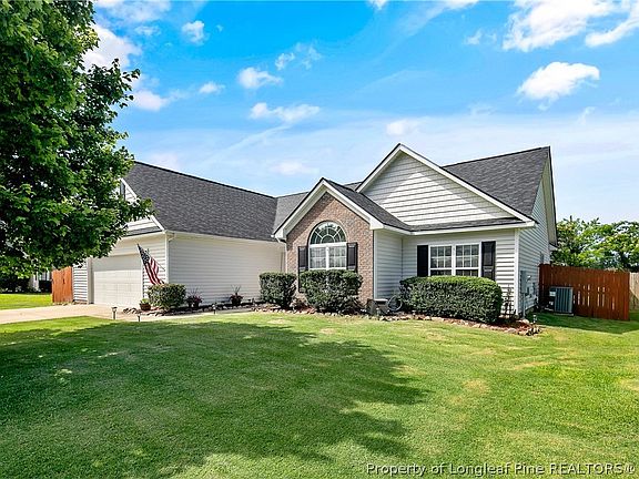 Welcome to this stunning 3-bedroom, 2-bath home, featuring a bonus room with a closet that can serve as a 4th bedroom. Enjoy hardwood floors throughout the main living spaces and a living room with a cathedral ceiling. The spacious eat-in kitchen boasts ample cabinets, granite countertops, and stainless steel appliances. Entertain in the formal dining room or use as a flex space. The primary suite offers a trey ceiling, dual sink vanity, garden tub, separate standing shower, water closet, and walk-in closet. Relax on the screened-in patio or take a dip in the in-ground pool in the privacy-fenced backyard. Major updates include a new HVAC in 2018 and a new roof in 2024. Irrigation system and whole home water filtration system. Don’t miss this gem located in the Jack Britt school district! Convenient to shopping, restaurants, and an easy commute to Fort Liberty. Schedule your showing today!