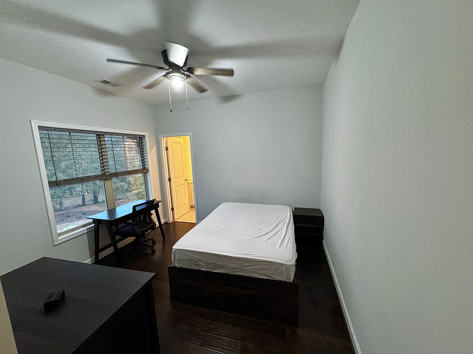 Two guys in their mid twenties currently live in this home. Bright and spacious private room available for rent in a quiet, well-maintained home. This room features large windows with plenty of natural light, a ceiling fan, and hardwood floors for a modern and clean look. The space includes a comfortable full-size bed, a dresser, a nightstand, and a desk with a chair, making it ideal for both relaxing and working. My brother and I have a small/medium-sized hypoallergenic labradoodle. You will have access to a private bathroom with a shower/tub combo, ample storage, and contemporary finishes. The closet in the bedroom provides plenty of storage for your wardrobe. The home is located in a serene neighborhood and is close to essential amenities. It is downtown Kennesaw which makes it a great place for restaurants, festivals, shopping, and enjoying the newly built park. Perfect for students or professionals seeking a cozy and well-equipped living space. The house is located 5 minutes from Kennesaw State University Features: Private room with hardwood floors Fully furnished: bed, dresser, nightstand, desk, and chair Large window with a view Ceiling fan for added comfort Private bathroom with shower/tub Closet with storage space Quiet and safe neighborhood Available now! Contact for more details or to schedule a viewing. Lease Term Summary Rent: $950 per month, due on the 1st of each month. Security Deposit: $2,000, due at lease signing. Utilities: Shared and split three ways among tenants. Lease Duration: 12 months (negotiable upon request). Smoking Policy: Tenant can smoke outside of the townhouse, but not inside. Pet Policy: Pets are not permitted without prior written approval. Parking: Off-street parking is available on a first-come, first-served basis. Maintenance Responsibilities: Tenants are responsible for minor upkeep, such as replacing light bulbs and keeping the unit clean. Landlord handles major repairs such as HVAC, washer, etc. By signing, the tenant agrees to these terms and any additional conditions outlined in the full lease agreement.