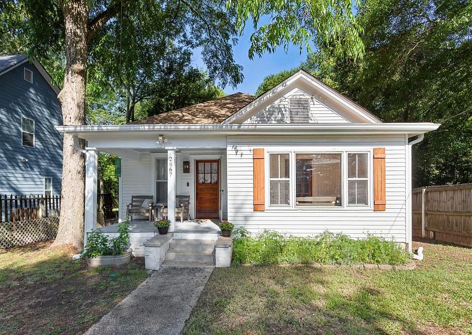 Welcome to 2867 Cheney St, a stunning blend of 1920s charm and modern upgrades in convenient East Point, Georgia! This 3 bedroom, 2 bath beautifully restored home boasts a wealth of character with its 1920s-inspired architectural features, including original chandeliers in the dining room and kitchen that add a touch of timeless elegance. The home offers more than just elegant details, it's also a versatile living space designed for comfort and functionality. The floor plan includes a separate office off of the middle bedroom, as well as an East-facing sunroom that's perfect for green thumbs or morning yoga. The gorgeous, refinished original wood floors flow seamlessly throughout most of the home, perfectly complementing the updated interior with its crisp paint scheme that enhances every room, both inside and out. The completely renovated front bathroom showcases meticulous attention to detail, while all-new doors throughout most of the house provide a polished finish to every space. The heart of the home, the kitchen, has been fully renovated with modern amenities and stylish finishes, butcher block countertops and a farmhouse sink, making it a chef's delight. Outside, a large backyard with a spacious shed, offers ample space for outdoor gatherings and relaxation. Convenient to Hartsfield-Jackson International Airport, MARTA, shops, restaurants and a quick drive to downtown Atlanta, 2867 Cheney is close to everything without losing its unique small-town feel. Don't miss your opportunity to make this exceptional home your own. Schedule a showing today!