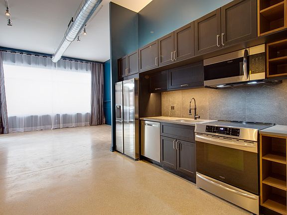 Beautiful, just converted storefront ideal for anyone who is looking for large residential apartment, live/work unit, photo studio or more. Specious 1020 sqft loft has brand new kitchen with separate king size bedroom and full bathroom. This unique 1bd/1ba apartment also offers custom fresh paint, an open floor plan, polished concrete floors, 14' high ceilings, central air and full size washer and dryer in the unit! Steps to restaurants, transit, parks and close to expressway. Parking space available at additional charge. Pets allowed. 2 year or longer lease preferable. Renter responsible for Gas and Electric. $300 non refundable move in fee. $29.95 application fee per applicant.