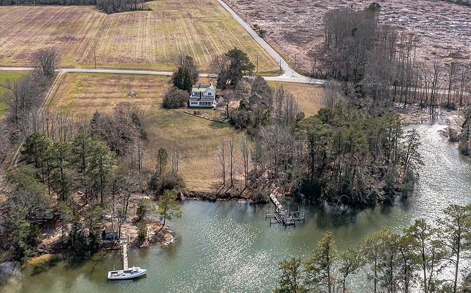 Charming, historic 1903 Farmhouse with 1985 main level addition offers a total of 3,680 SF of living space on 7 mostly cleared acres. First floor owners suite and family room with brick fireplace overlook rear lawn and waterfront. Original home section boasts plank flooring, elegant woodwork and stair railing, and spacious rooms. The large kitchen with center cooking island is a combination of by-gone years style and modern conveniences. A porch off the family room provides outdoor views all year round. Four bedrooms and five bathrooms. 20K Generator. Spruce up the barn and bring your animals, or use for storage and project space. Leave your dock on Cranes Creek (2 boat lifts!) and be out to the Bay in minutes! Great weekend, full-time, or vacation rental experience.