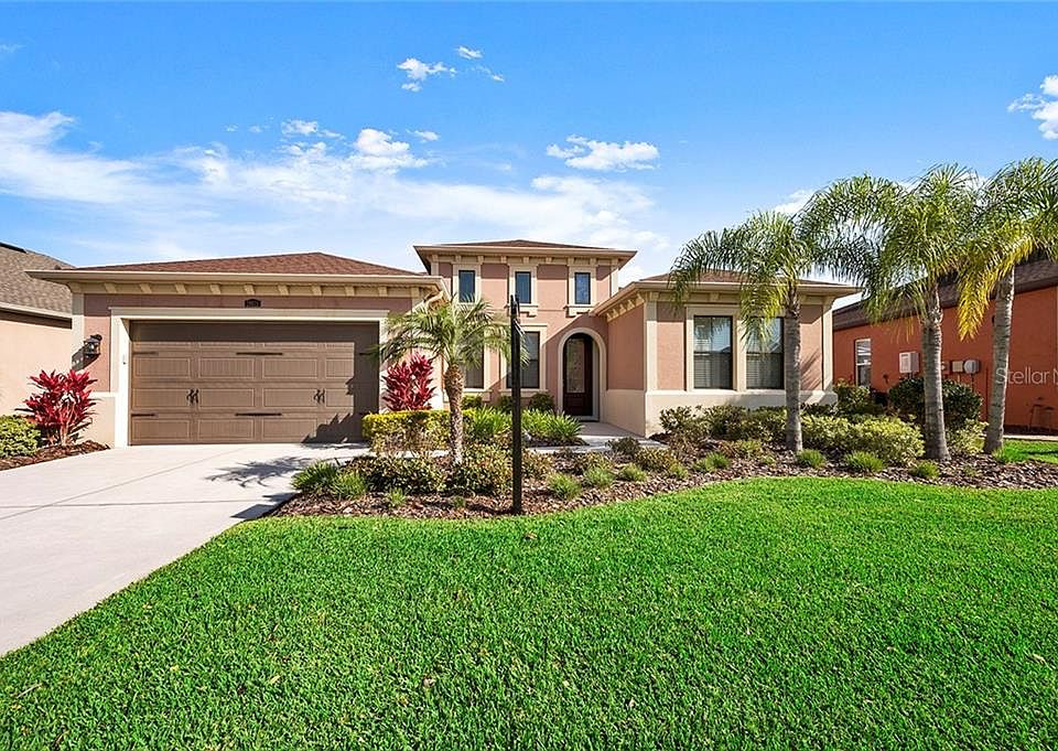 PRIVATE AND VIRTUAL TOUR AVAILABLE. Single level living at its best! The Plymouth Ranch was built by Standard Pacific with comfort and elegance design in mind.This is a turnkey property! Premium lot with a beautiful pond view in a gated subdivision.The office is located to the left. With plenty of natural light, high ceilings and wood floors. Very privately situated, the master suite is located to the left wing of the home . It features wood flooring and tray ceilings. The master bathroom has individual sinks, garden tub and a separate glass shower. In the center of the home, you will find an open living room concept and formal dining room. The kitchen has 42"inch dark wood cabinetry,granite counter tops, double ovens, stainless steel appliances,upgraded cook-top and a separate kitchenette room. Perfect home for entertaining with lots of space! The back porch has an extended screened in lanai and gorgeous pond views! Additional private yard space to the left of the lanai. The home also offers an indoor laundry room, with sink and granite mount. The garage has an extended tandem. Can be used for a 3rd vehicle or extra storage. The community offers a Resort style pool, community clubhouse, fitness center, basketball courts, tennis courts, dog park, and walking trails. Centrally located in the growing community of Wesley Chapel, close to the Wiregrass Mall,Tampa Outlet malls, I-275, the Florida Ice Center and much more. Why build when the perfect home is available NOW! Schedule your showing today.