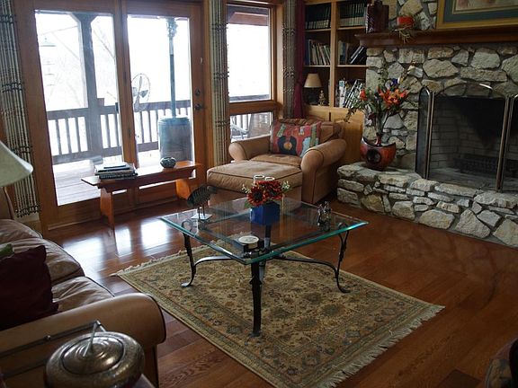 Golf course entrance with a drive along the Kings River Arm ofTable Rock Lake to this lakefront home.Big panoramic lake views with the lake ever so close. This wood and stone accented home sits on nearly 3/4 acre and has a slip/lift & pontoon boat available for Xtra $$ & only three driveways away. Home features hardwood floors, cathedral ceilings w/skylights, 2 floor to ceiling fireplaces, 2 decks the total length of home for killer views & barbeques and 2 car garage under home. Perfect lake setting in anice neighborhood.