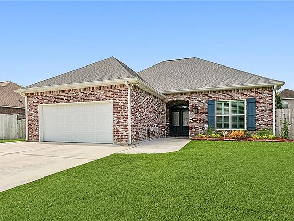 Barely lived in home in the popular Medico Trace neighborhood. This 3 bedroom home has no carpet and was built with Louisiana conditions in mind. Home comes with whole home generator, post tension rebar, gorgeous hurricane shutters, tankless hot water heater, radiant barrier in attic and tornado room. Every detailed was thoughtfully picked out from the stone, to backsplash to all the light fixtures. The kitchen dazzles with SS appliances, quartz counter tops and tons of natural light. You can enjoy your morning coffee on the screened in back porch equipped with gas line for future outdoor kitchen. Shed in the backyard adds extra storage for lawn equipment and much more. Garage has utility sink with side door entrance for easy access to yard and trash storage. This home is one you are going to fall in love with.