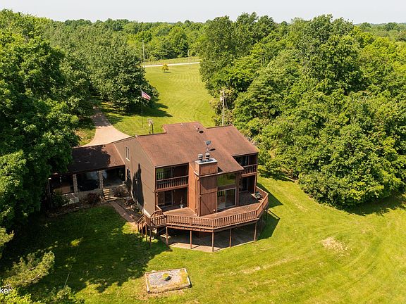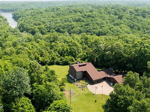 REDUCED. Have you ever dreamed of owning property near the lake? This is the one! This property backs up to the Corp. of Engineering. So privacy is the name of the game. Spectacular view of the lake from all but one bedroom. Living room, dining area, office area, & the Family/Game room also share this view. A Fireplace in the basement & living room. Enjoy entertaining on the large Pavilion with a wood burning fireplace & ceiling fans. Soak the days stress away with the hot tub in the pavilion. Large detached garage will house your Boat, RV or maybe you need a work shop. No problem we've got you covered. Checkout the photos of your new tree lined driveway. The mechanical room & third garage in the basement gives you extra room for lawn equipment. Three of the four bedrooms have a walkout de to enjoy after a long day at work. Sellers has tile to use as upgrades or to finish the new addition. Sellers plan was to finish for large laundry-mud room. Some additional renovating supplies will remain with your purchase. This property can be purchase with additional 4 acres.