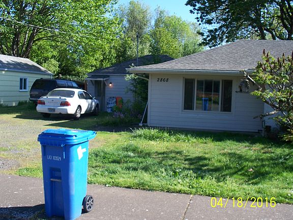 OPEN HOUSE- Sat/Sun October 3rd and 4th- 11:00am-1:00pm Location, Location! This 3 bed 1 bath home is located just off Coburg rd within walking distance to local schools, grocery stores and restaurants nearby. The home boasts a large living room, dining room, big kitchen, on-site laundry, ductless AC/Heating, a large back yard and quiet neighborhood. New carpet in bedrooms. Pets under 40 lbs are accepted with $250 pet deposit. Approved tenants will pay first month's rent and deposit equal to the monthly rent rate. One year lease at signing. House has attached studio apartment on east end which is a separate rental. Only shared wall is one small portion of the kitchen. Please fill out Zillow application if interested or attend the open house. Owner pays landscaping. Tenants pay utilities and trash. Tenants can cover landscaping and get discounted rent. Absolutely no smoking inside rental.